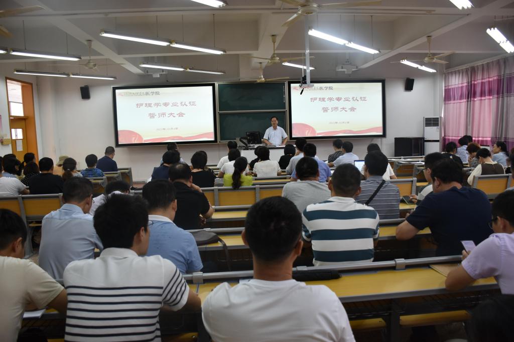 10月8日,学院护理学专业认证誓师大会在财贞楼321举行。学院全体教职员工参加大会,大会由学院党委书记夏瑞明主持。