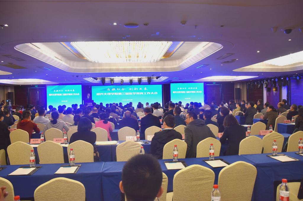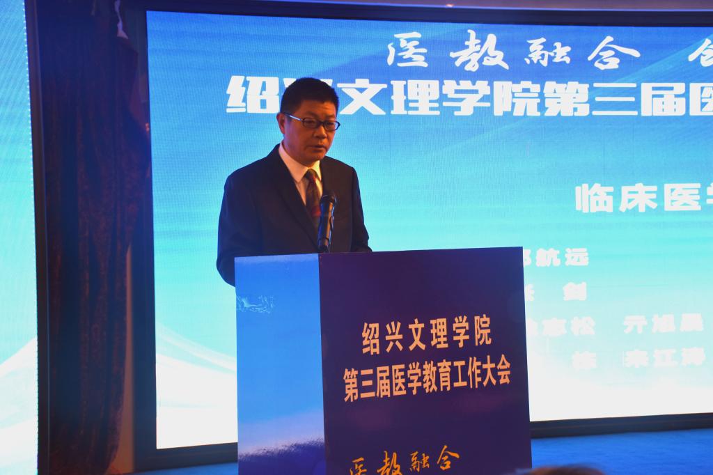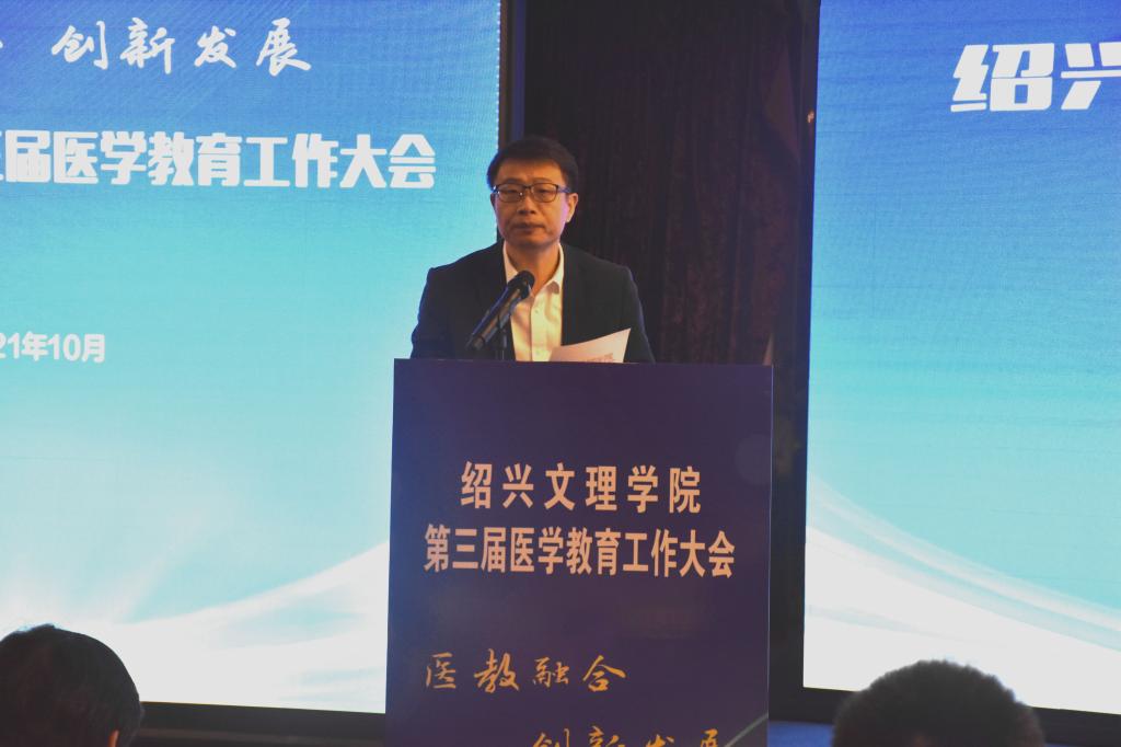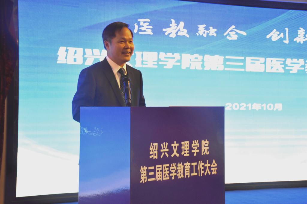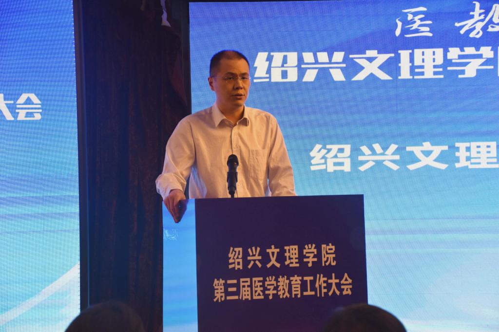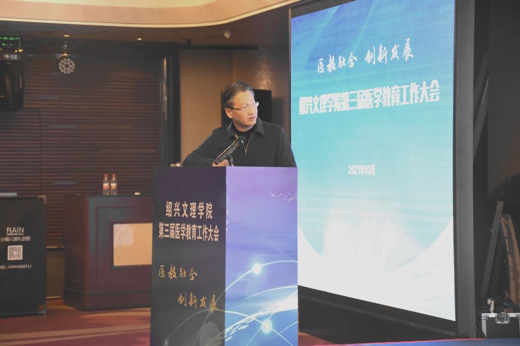 10月17日,学校举行第三届医学教育工作大会。本次会议主题为“医教融合,创新发展”,旨在进一步深化医教融合,加快我校医学教育的创新发展,培养高质量医学人才。校长王建力、副校长黄坚,校党委委员、开云电子竞技官方网站院长郭航远,绍兴市卫健委副主任金红柱、学校教务处处长陈伟鸿,学校研究生工作部部长、研究生处处长令狐文生,绍兴市医学会副会长兼秘书长阮伯金,绍兴市护理学会副理事长兼秘书长张园芳,绍兴市继续医学教育和医学学术交流管理中心原主任金芝英,校附属医院院长、开云电子竞技官方网站副院长张伟阳,校附属医院党委书记胡学建,校第一附属医院党委书记寿清和,校附属新昌医院党委书记、开云电子竞技官方网站副院长姚灿珍,开云电子竞技官方网站附属精神卫生中心主任、绍兴第七人民医院院长官莉莉,以及各附属医院、研究生培养基地、教学医院、实习医院、社区卫生服务中心相关领导、相关科室负责人, 开云电子竞技官方网站班子成员和各科室、系部、中心负责人,绍兴市医学会医学教育分会的委员和学组成员。大会由开云电子竞技官方网站党委书记夏瑞明主持。