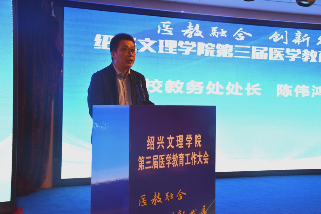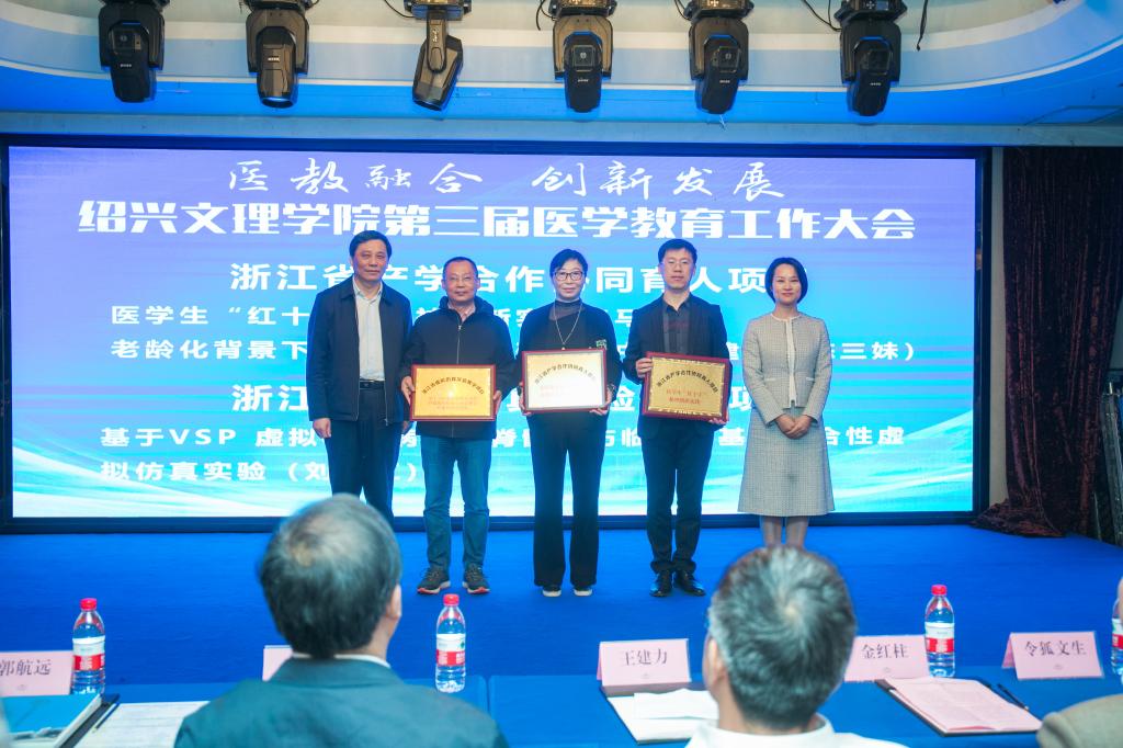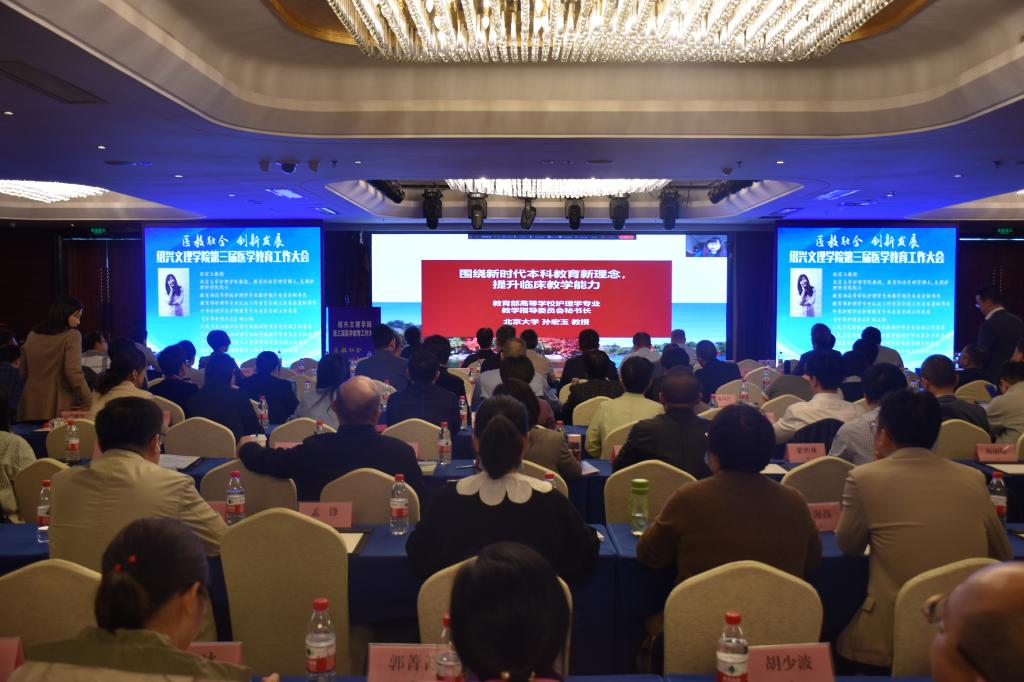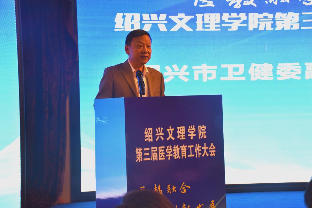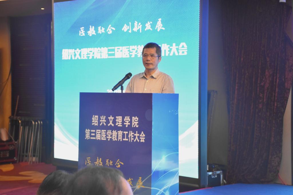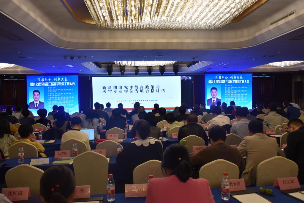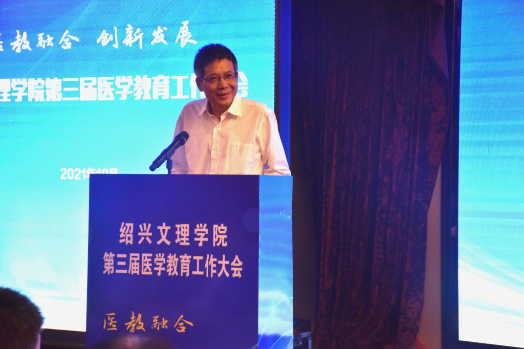 10月17日,学校举行第三届医学教育工作大会。本次会议主题为“医教融合,创新发展”,旨在进一步深化医教融合,加快我校医学教育的创新发展,培养高质量医学人才。校长王建力、副校长黄坚,校党委委员、开云电子竞技官方网站院长郭航远,绍兴市卫健委副主任金红柱、学校教务处处长陈伟鸿,学校研究生工作部部长、研究生处处长令狐文生,绍兴市医学会副会长兼秘书长阮伯金,绍兴市护理学会副理事长兼秘书长张园芳,绍兴市继续医学教育和医学学术交流管理中心原主任金芝英,校附属医院院长、开云电子竞技官方网站副院长张伟阳,校附属医院党委书记胡学建,校第一附属医院党委书记寿清和,校附属新昌医院党委书记、开云电子竞技官方网站副院长姚灿珍,开云电子竞技官方网站附属精神卫生中心主任、绍兴第七人民医院院长官莉莉,以及各附属医院、研究生培养基地、教学医院、实习医院、社区卫生服务中心相关领导、相关科室负责人, 开云电子竞技官方网站班子成员和各科室、系部、中心负责人,绍兴市医学会医学教育分会的委员和学组成员。大会由开云电子竞技官方网站党委书记夏瑞明主持。