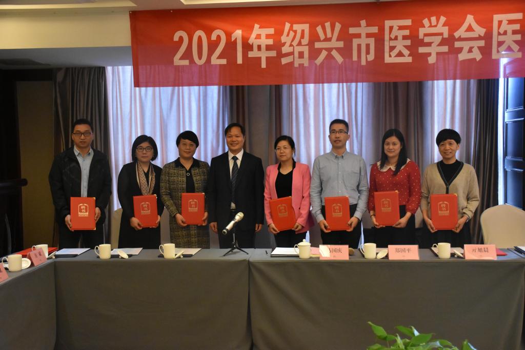 阮伯金宣读了《绍兴市医学会关于调整医学教育学分会委员会委员及学组成员名单的通知》,阮伯金、夏瑞明分别为新调整的医学教育学分会委员会委员及学组成员颁发聘书。
