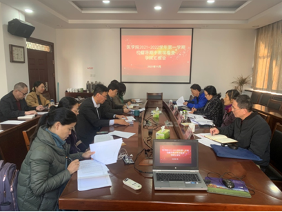 11月10日上午,学校教学督导组成员赵梁红、刘丽华、弭忠祥、袁夏炜四位教授来学院进行期中教学检查。副院长张剑,教研科科长、临床医学部教管办主任马国庆,学院督导、各系部主任及教研科相关人员参加汇报会。
