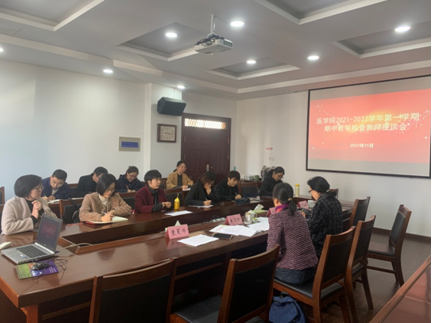 汇报会后,赵梁红、刘丽华两位教授先后主持召开期中教学检查教师代表、学生代表座谈会,重点就课程学业评价听取了师生们的意见和建议,对座谈会发现的问题作了解答和探讨。弭忠祥、袁夏炜两位教授抽检了《病理生理学》《病原生物学与免疫学》《成人护理学1》《内外科疾病康复学》《人体影像解剖学A》等10门核心课程的课程学业评价材料。