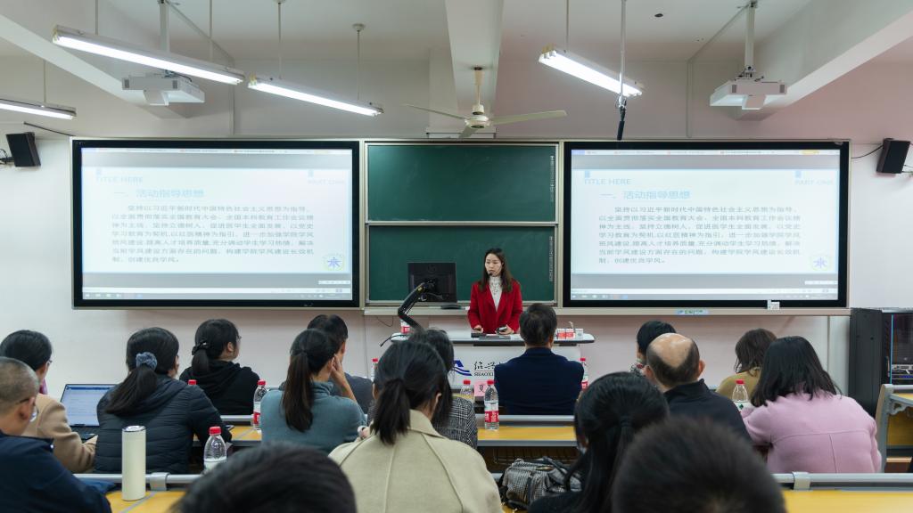 郭航远院长强调了学风的重要性。他指出,大学生涯中养成的良好风气能帮助同学们树立正确的三观,是同学们成为一个受组织信任、社会欢迎的医护工作者的关键。郭院长希望同学们继承“老卫校精神”,本着为国家、为社会、为自己的初心,做到“自律、自觉、自强”三点,努力奋进,开创绍医新时代。郭院长希望同学们在未来生活学习中厘清四组关系:一是专业跟学校的关系,要以专业为导向,努力拼搏;二是内心和环境的关系,要抵制诱惑,从容应对;三是大学生涯与职业生涯的关系,要立志高远,合理规划;四是专长与成长之间的关系,要眼界宽广,文理兼修。郭院长要求老师们能正确处理好教师与老师的关系,不仅要做学生在学业上的解惑者,更要做学生成长道路上的领路人。