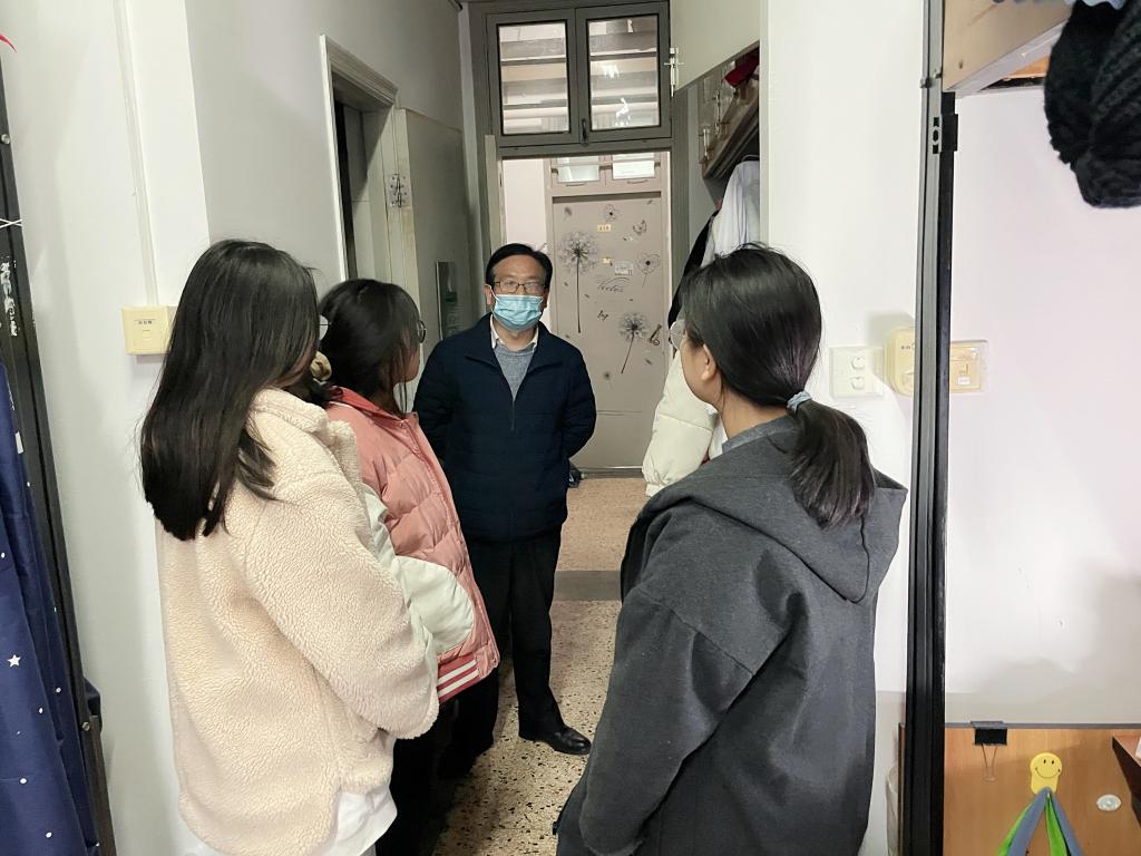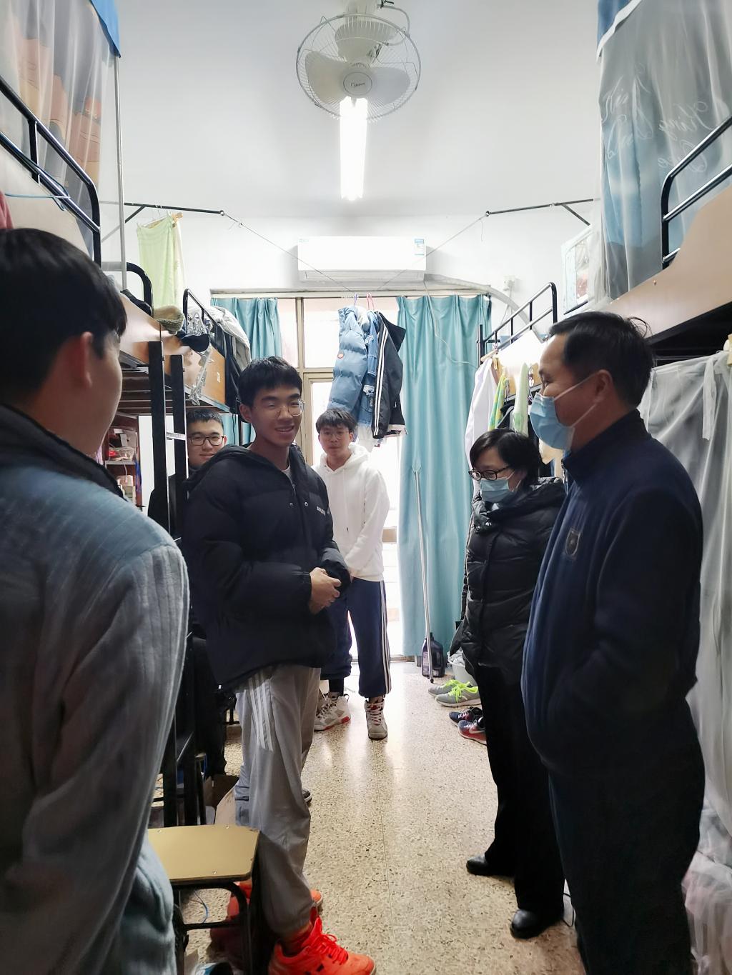 走访过程中,金坚强对同学们提出四个要求,一是要严格服从疫情防控指挥,早睡早起适当运动,形成健康生活方式;二是要提高防诈意识,警惕网络电信诈骗;三是要积极参与学科竞赛,刻苦锤炼自我,成为高素质人才;四是注意消防安全,杜绝大功率电器。