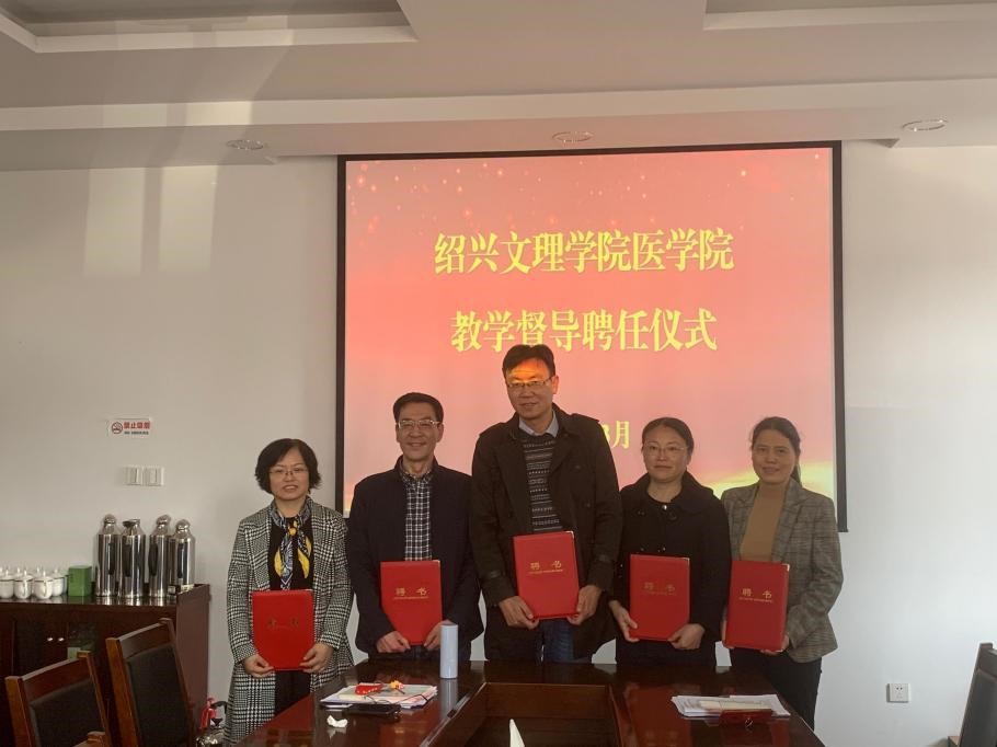 张剑副院长依次向新一届教学督导颁发了聘书,与他们合影留念,他希望督导们能积极配合学院开展督导工作,严格履行岗位职责,加大督导力度,在工作过程中要及时发现问题并提出建议。马国庆科长宣读聘任文件,就教学督导基本职责、主要任务、聘任条件、考核制度等作了补充说明。(教研科 张洁翠)
