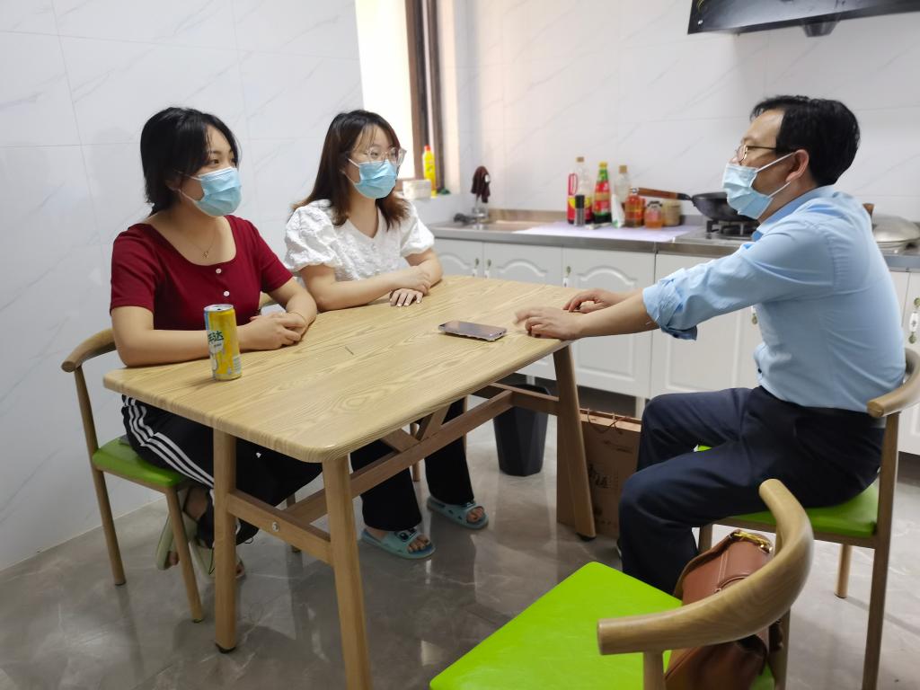 为落实疫情防控规定,强化学生管理主体责任,了解学生生活近况,近日,学院党委副书记金坚强带队走访了校外住宿毕业生。毕业班班主任、辅导员代表顾玲玲、杨荧等随行。