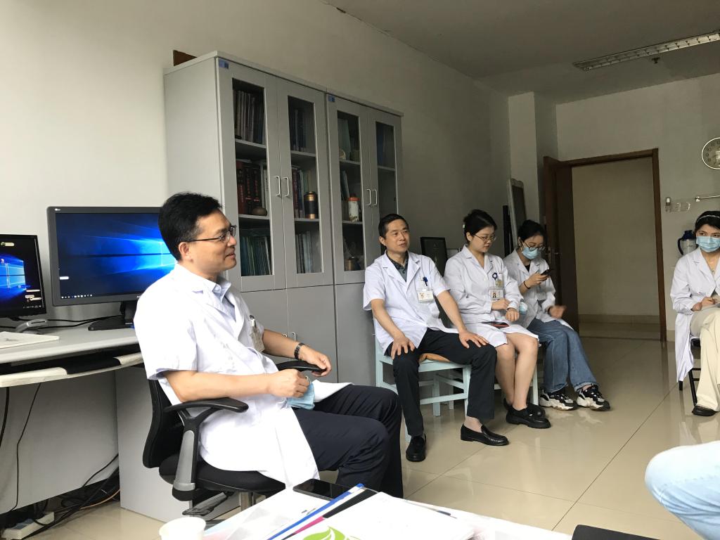 马玉富向赵振华介绍了影像系近一年来新引进的几位博士和他们各自的研究方向,赵振华也向介绍了参加会谈的放射科几位科研骨干。