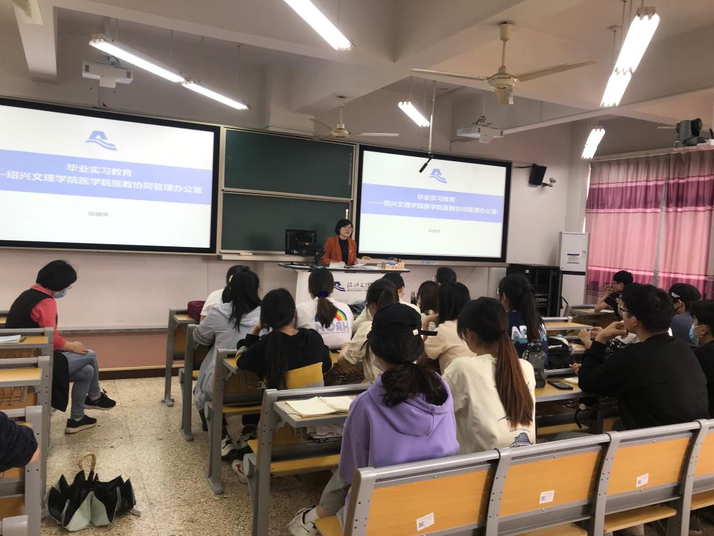 动员会上,各系(部)就毕业实习的内容要求、科目安排、手册填写、成绩考核、实习与考研就业的关系等方面均做了说明和指导,要求每位学生都能摆正实习心态、找准位置,增强责任心、遵守实习纪律,按照实习手册要求保质保量完成实习任务。同时强调在新冠疫情常态化下,重视自身人身安全、医疗安全和财务安全。医教协同管理办公室陈魏燕老师对实习分组、报到、中期考核、实习相关费用报销等具体事宜作了介绍,详细解读了实习生请假管理办法,特别强调了实习期间的安全问题和纪律问题。