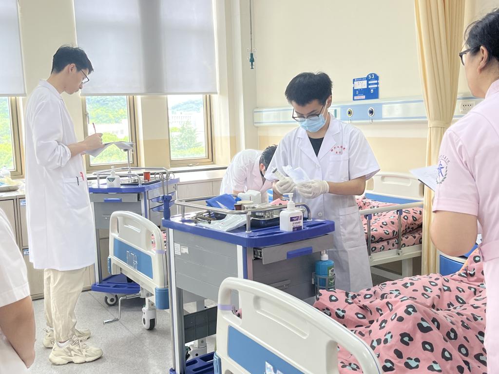 为加强巩固护理学专业学生的临床护理操作技能,促进学生理论知识与实践技能的结合,增强临床思维能力,锻炼团队合作水平。护理系于6月22日组织开展了学生综合技能强化考核,为学生顺利进入并适应临床实习岗位打下坚实的基础。本次强化考核前期经过学生对14项操作项目的近两周训练,是检验学生训练水平的有效措施,根据案例的考核也在不断提升学生的临床思维能力。
