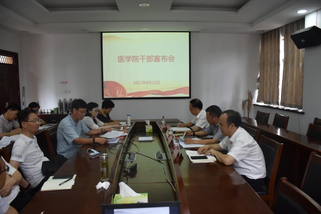 6月22日,学院中层领导干部任命会在行政楼219会议室举行。校党委副书记沈赤、副校长黄坚,校党委委员、党委组织部部长宣绍龙出席会议,学院党政领导班子成员、各职能科室主要负责人参加会议。会议由黄坚副校长主持。