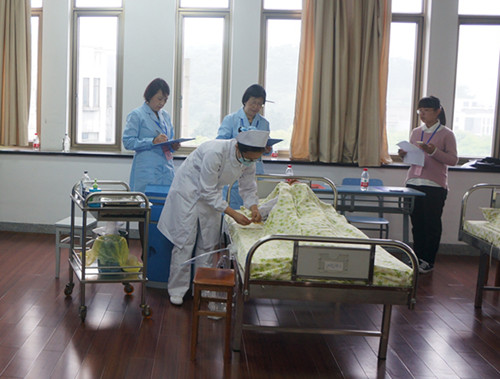 为进一步弘扬南丁格尔精神,激励护理专业学生加强专业技能实训,我院和校教务处联合举办了此次竞赛。经过前期的理论知识初赛选拔,2013级护理学专业共有36名同学进入决赛。此次竞赛接轨省赛,既有团队合作项目,又有单项操作。进入决赛的36名同学以3人一组,分为12组参加决赛。