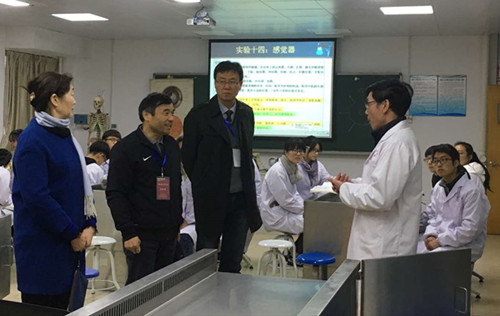 14:45,在张剑副院长陪同下,李俊伟教授走访考察了医学实验中心的医学影像PACS医学实验室、模拟手术室、急救室、OSCE考试中心、护理技能实训室、模拟重症监护病房、ECS控制室等多个实验室,观摩实验教学,并不时拍照、询问,听取介绍。