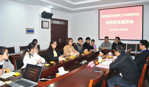 16:10,李俊伟教授与在校医学生座谈。“你为什么报考绍兴文理学院开云电子竞技官方网站?”“你为什么选择护理学专业?”“你的专业思想稳定么?”“你对自己的专业课教学感受如何?有何建议?”“你们对学校、学院还有什么要求和建议?”“在就餐、住宿、社团活动、校园文化等各个方面,你们有什么想说的么?”李俊伟教授亲切平和的态度和贴近学生学习、生活的问题,打开了现场学子的话匣子,他们踊跃回答了李俊伟教授的提问,表达了对学校、学院、老师的感恩之情和对所学专业和未来职业的热爱。同时,他们也提出了自己的意见和建议:“希望多安排一些见习、实习的机会”,“实验室有些仪器和教具较为陈旧,希望可以购进新的仪器和教具”,“我要考研”,“如果有机会,我会出国学习”,“如果南山校区也有室内羽毛球场就好了”,“如果南山的图书馆能多一些人文社科类的图书就更好”……李俊伟教授表示,把你们培养成才是学校、学院和每一位老师的职责和心愿,“我一定会把你们的心声反映上去”。