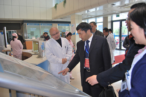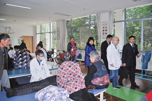 11:00,李俊伟教授在柳国庆、陈三妹和绍兴市卫计委副主任沈荣根等陪同下,走访考察社区卫生实践教学基地——平水镇卫生院。在平水分院院长陈丽娜和副院长方舟、裘国明引导下,李俊伟教授走访考察了中医馆、健康小屋、康复中心、全景机房、康复室、临床技能培训中心、图书阅览室等,对平水镇卫生院研制的膏药、移动查房、康复治疗、图书阅览室等表示充分肯定。