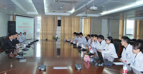 8:10,李俊伟教授在附属第一医院会议室与医院领导班子成员座谈,听取教学工作汇报。绍兴市卫计委副主任王宏达,附属第一医院领导郭航远、寿清和、屠春雨、陶哲军、钱宇、阎晓勤、冯钢、车焕永等出席座谈会。