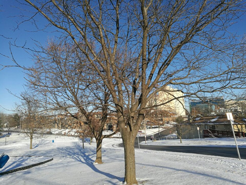 只剩光秃树枝偶尔白雪覆盖的别样冬天