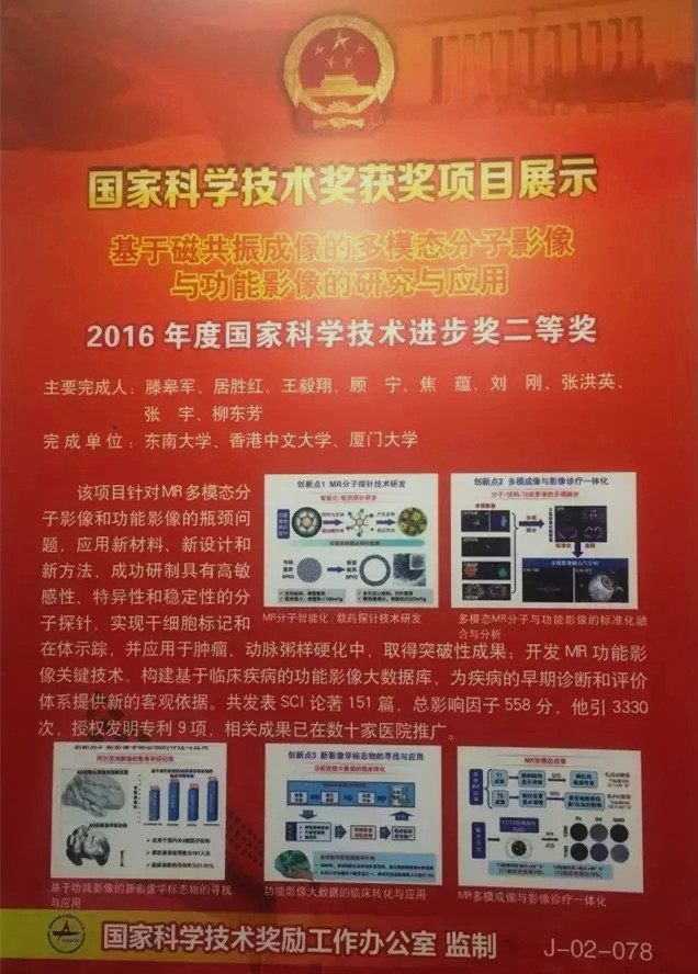 1月9日,中共中央、国务院在北京隆重举办国家科学技术奖励大会,习近平总书记出席大会并为最高获奖者颁奖。东南大学附属中大医院院长、教授,我院82届放射专业滕皋军校友带领课题组成员开展的《基于磁共振成像的多模态分子影像与功能影像的研究与应用》课题荣获国家科技进步二等奖。这是滕皋军教授团队第三次获得国家科技进步二等奖。