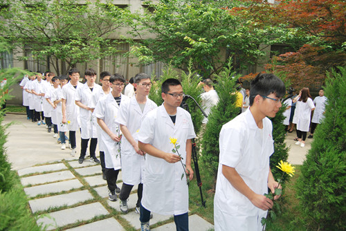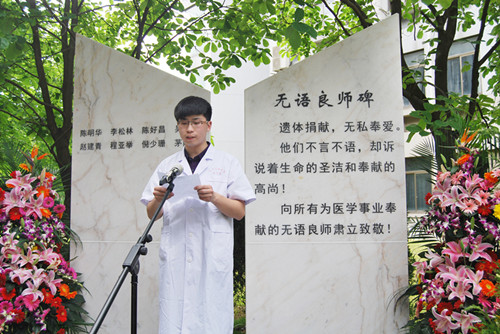 我院临床医学专业133班胡露琦在发言中说,作为一名初登医学殿堂的学生,正是因为“无语良师”的付出和奉献,才可以更全面、更直观地学好医学知识,更深刻地感悟救死扶伤和仁心仁术的内涵。他表示,将怀着无比崇敬和感恩之心,刻苦学习,不忘初心,竭尽全力除人类之病痛,助健康之完美,维护医术的圣洁和荣誉;救死扶伤,不辞艰辛,为祖国医药卫生事业的发展和人类身心健康奋斗终生。