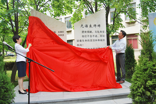 活动现场,丁晓燕会长和唐和祥副书记共同为“无语良师”碑揭幕。