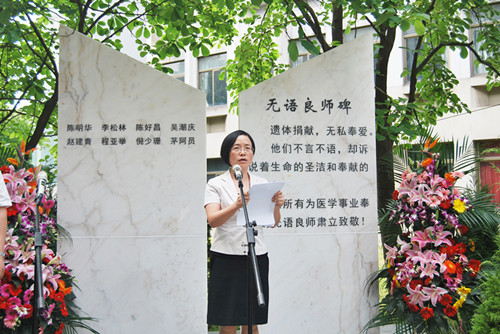 顾涛副市长指出,器官移植使越来越多的器官衰竭患者重生,角膜移植使角膜致盲患者重见光明,遗体捐献让越来越多的医学生享有更好的学习条件,“无语良师”选择了身后馈赠给医学事业或他人一份生命的礼物,展现了人性中最耀眼的光辉,成就了不平凡的人生。