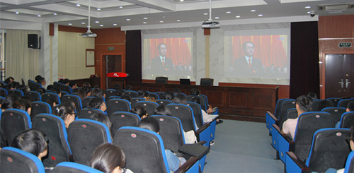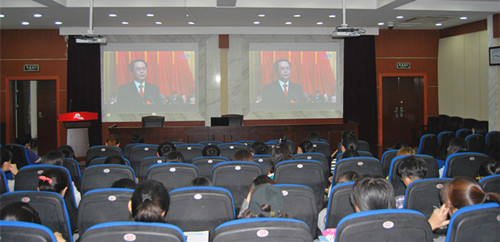 当日上午8:50,我院师生党员、预备党员、入党积极分子一百余人在财贞楼二楼报告厅集体收看了党代会开幕式。