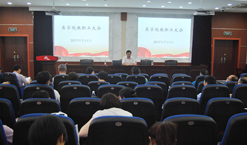7月1日下午,学院在财贞楼二楼报告厅召开教职工大会,部署暑期重点工作。院领导柳国庆、袁油迪、张剑、葛建荣、陈三妹,以及全体教职员工与会。