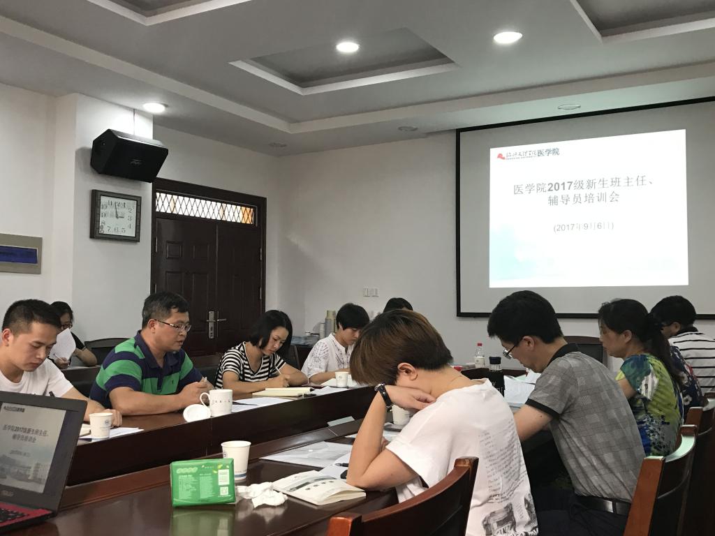 ,我院在行政楼219会议室举行辅导员、2017级新生班主任培训会,会议历时一天。院党委副书记袁油迪出席会议并作主题讲座,学生科、教研科负责人和优秀班主任分别进行了工作说明、文件解读或经验交流。