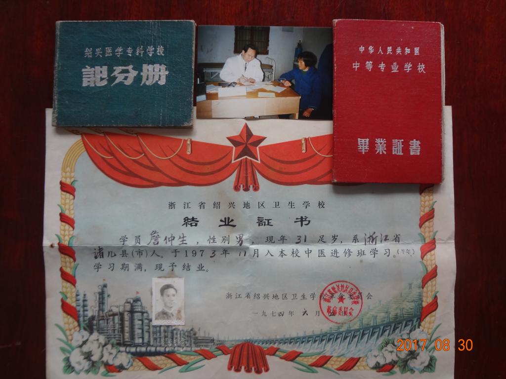 1963.6.~1979.12.在绍兴杨汛桥公社卫生院工作,任负责人及院长多年,期间在1973~1974年再入绍兴地区中医进修班(绍兴卫校承办)学习;1979年参加浙江省中医(药)师选拔考录取为中医师(本科待遇)。