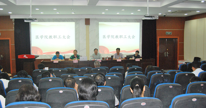柳国庆书记从今年医学专业招生录取情况、教学、科研、临床医学专业硕士申报、学生工作、社会服务、院庆筹备和党建工作等7方面对暑期重点工作进行了回顾;从省内兄弟院校良好的发展势头带来的挑战和学校内部医学学科应有的地位还没有确立、人才培养面临新的挑战等三方面对当前我院发展面临的困难和形势进行了深刻分析。对于新学期的工作,柳书记从2018版人才培养方案修订,积极推进教育教学改革,“外引内养”加强师资队伍建设,着力提高学科科研水平,办好办学百年纪念系列活动,加强社会服务内涵提升,加强党建和思想政治工作等8项工作进行了重点部署。最后,柳国庆书记提出了三点要求:一是要居安思危,树立强烈的发展意识。每一位教职工都要有“时不我待”的紧迫感,提升教学科研和管理水平;二是要实干苦干,补齐发展短板。要实干、苦干加巧干,补齐学科教学等方面短板。三是要爱院兴院,营造团结和谐氛围。“院兴我荣、院衰我耻”。要营造一种包容大气、团结合作、积极竞争的良好氛围。要像爱护自己眼球一样爱护学院的荣誉,共创美好的生活和学院的美好未来。
