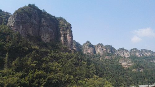 穿岩十九峰位于新昌城关西南约22公里处的镜岭镇境内,由十九峰、千丈幽谷、台头山、倒脱靴与镜岭古镇等组成,是我国壮丽的丹霞地貌景区之一,有自然景观84处,人文景观13处,总面积30.65平方公里,峰峰相连,横亘2.5公里。“穿岩之峰高苍苍,峰峦十九摩天光”。一脉秀峰形态各异,栩栩如生,山上林木青翠,山下溪涧碧澄见底。攀登十九峰,峰巅四周凌空,景色诱人。站在峰头,心旷神怡,田园乡村风光一览无遗。