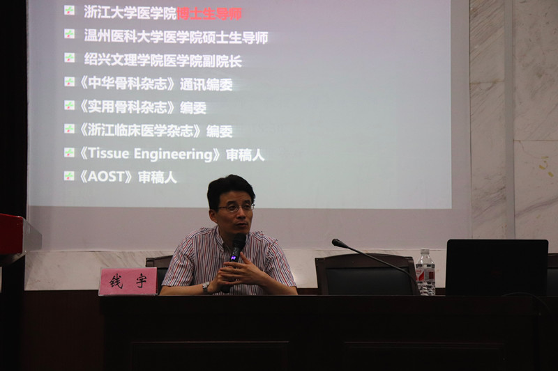 5月16日晚,“医路人生——导师面对面”第二课“如何成长为一名优秀的外科医生”在财贞楼二楼学术报告厅开讲,主讲嘉宾为学校附属一院(绍兴市人民医院)副院长兼开云电子竞技官方网站副院长、浙江大学博士生导师钱宇教授,我院200余位学子现场聆听了报告。