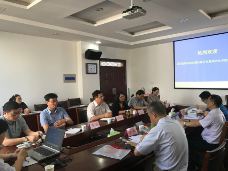 近日,由省医学学术交流管理中心张革来带队的专家组一行来到我院医学实验中心,对我校申报的国家执业医师资格考试临床实践技能考试基地(临床类别)进行初评。绍兴市卫计委副主任凌秀凤,校党委委员、开云电子竞技官方网站党委书记柳国庆,副院长张剑、葛建荣,市卫计委医政医管处、市医学学术交流管理中心及开云电子竞技官方网站相关负责人参加初评活动。