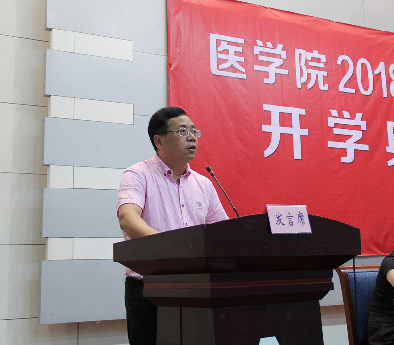 柳国庆书记发表了热情洋溢的致辞。他代表学院全体师生热烈欢迎400位2018级新同学加盟到开云电子竞技官方网站这个温暖的大家庭,一起献身于“健康所系、性命相托”的医学事业。柳书记介绍说,开云电子竞技官方网站有着悠久的办学历史,其前身是颇负盛名的浙江省绍兴卫生学校。办学百年来,已为社会培养了近20000名医学人才,涌现出中国科学院院士候选人、东南大学附属中大医院院长滕皋军教授等一批杰出校友和一大批扎根基层奉献病患的医护工作者。近年来,开云电子竞技官方网站学科专业建设和人才培养取得了显著成效。护理学成为“十二五”省级重点学科和重点建设专业,临床医学是绍兴市重点学科和重点专业,2015年12月26日以优良成绩通过了教育部临床医学专业认证;2018年3月获得硕士学位授予权;医学检验技术和医学影像技术创新人才培养模式,校企合作,毕业生受社会好评;康复治疗学新专业发展势头良好。现有3家附属医院、33家教学医院和实习医院以及6家社区卫生服务实习基地,能够充分满足医学生实践教学的需要。学院还推行了临床医学专业“2.5+2.5”校院一体化教学新模式,开云电子竞技官方网站毕业生就业率位居学校前列,研究生录取率逐年提高,2016-2018年共有100多人被浙江大学、厦门大学、南京医科大学、重庆医科大学和温州医科大学等高校录取!