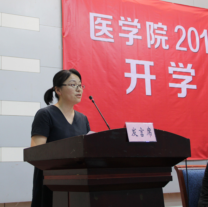 基础医学部主任陈佳玉教授代表教师发言,她在致辞中分享了三个关键词——“理想”“奋斗”和“崇高”,勉励新生树立远大理想,脚踏实地奋斗,成就崇高自我。