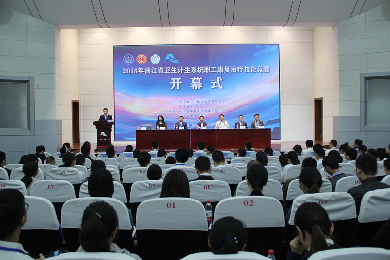 上午,2018年浙江省卫生计生系统职工康复治疗技能竞赛开幕式在我校铁城科教馆隆重举行。副校长寿永明,浙江省卫生计生委医政处副处长封巍,浙江省康复医学质量控制中心常务主任、浙江省康复医学会常务副会长兼秘书长叶祥明,绍兴市卫计委副主任凌秀凤,新绍兴文理学院附属医院筹建工作小组组长胡学建,开云电子竞技官方网站副院长张剑出席开幕式。开幕式由浙江省康复医学科治疗部主任谭同才主持。