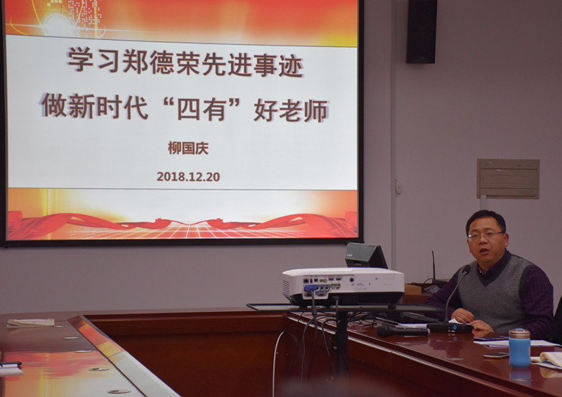 ,学院在南山3号楼409会议室召开“学法明纪正师风,清正廉洁树师德”师德师风主题教育活动,活动邀请了柳国庆副校长作题为《学郑德荣先进事迹,做新时代“四有”好教师》的主题报告。全院教职工参加了本次会议,会议由院党委副书记袁油迪主持。