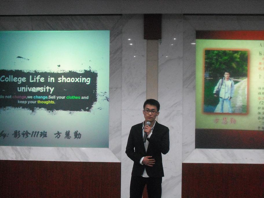 “情系班级、志愿奉献”,来自护理学111班的敖文馨,她相信“赠人玫瑰、手有余香”,致力于志愿者工作,带领班级及学院志愿者多次参与志愿者活动,为学院传播了更多的正能量;“科研逐梦想、勤奋筑辉煌”,那个逐梦路上的坚守者,临床医学111班叶猛飞,用科研经历贯穿了他丰富的大学生活。他说“把简单的事做好就是不简单,把平凡的事做好就是不平凡”;被人称“愿得一学霸,白首不相离”的学霸,护理学114班的俞哲琪,让我们跟随她的PPT,进行了一场学霸之旅;“像风一样的女子”,来自临床医学122班林辰莹,同样的一名学霸,人称99大神,她用自己的经历跟我们分享“细节是最打动人的”这一真理;一人一车一旅行,来自影像诊断101班的苏耀,用他的精美相册带观众回味了他的大学生活。各种志愿活动及光荣称号,旅行的痕迹,爱好的展示,让现场观众响起阵阵掌声;来自临床医学111班的朱思梦,用一颗追梦赤子心,带我们欣赏她的青春乐章;奔波于打工、回家、学习的护理学111班何秀秀,认为每个人都有属于他自己的快乐,于是她带我们去体验她的快乐;影像诊断111班的方慧勤用“智慧是我一生的追求”展示了他的智慧人生;医学检验122班的陈旭燕学习优异、乐观进取,勇敢亮出自己,为自己代言;而医学检验111班的黄明则告诉了我们一个道理:“人丑”就该多读书;护理学1202班的王倩同学则用“努力不一定会成功,放弃就一定会失败”阐述了她的学习、工作和生活之路;临床医学101班的寿梦娜让我们听到了她心怀梦想,执着追梦的声音;护理学124班的夏烨香用“诚以待人、毅以处事”展示了她精彩的大学生活;还有用习惯让平凡成为一种非凡的朱雪云、认真负责的王倩、乐于进取的李丹。