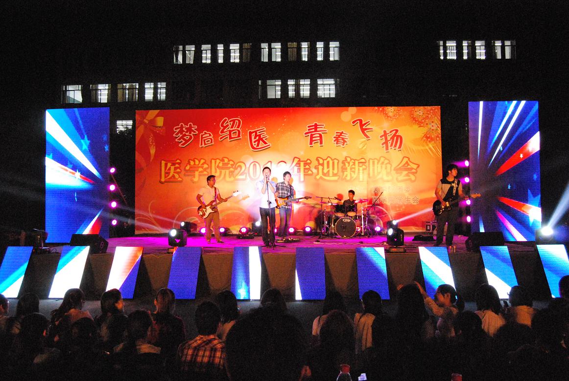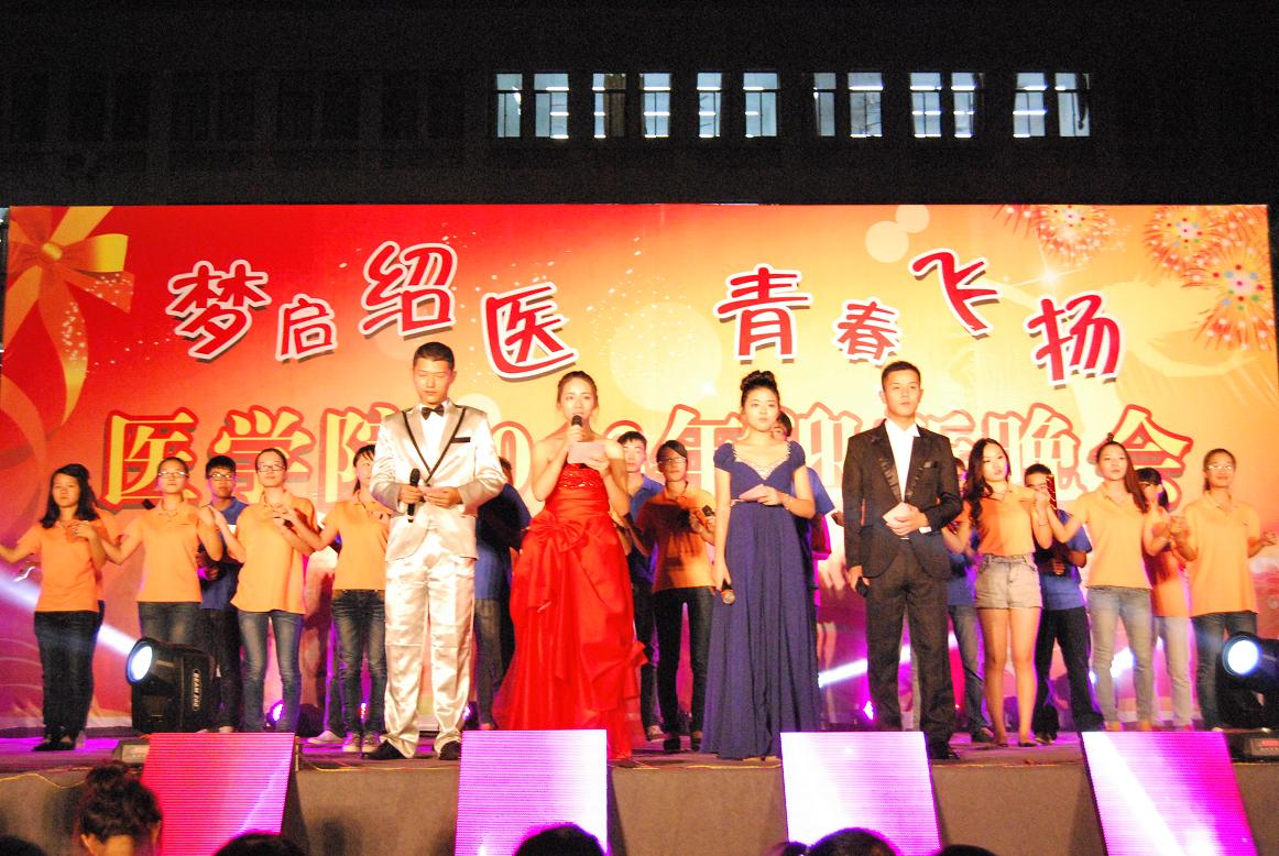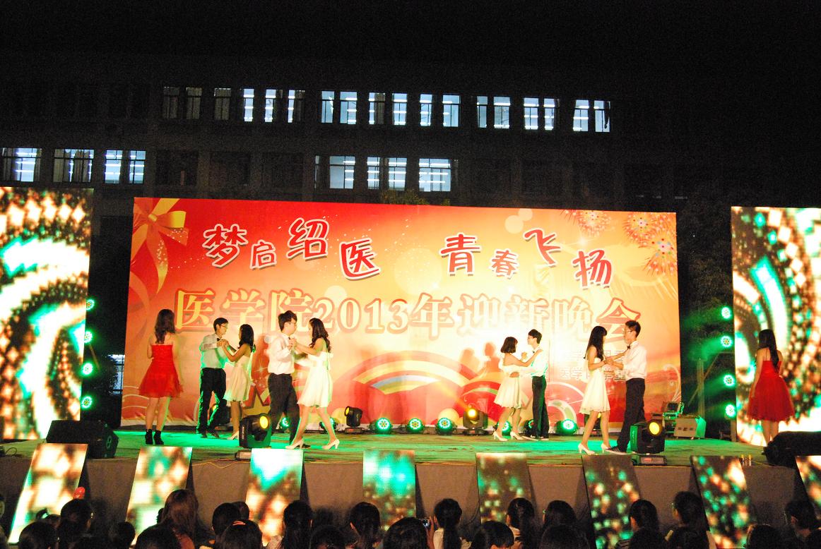 师生同抒绍医情,青春共筑中国梦。10月11日晚,由院团委主办、院学生会承办的2013年迎新晚会在南山篮球场隆重举行。院学生科副科长马国庆,院团委书记赵华,各专业辅导员、2013级各班班主任与2013级330余名新生共同观赏了这场视听盛宴。