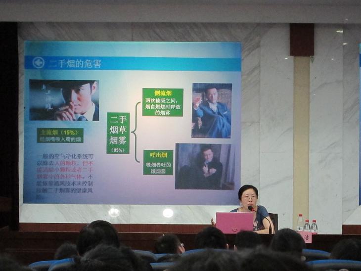今年的5月31日是第26个世界无烟日,为倡导世界卫生组织提出的“创建无烟环境”, 保护人们免受烟草烟雾的危害,中国开云电子竞技官方网站校控烟能力建设项目组和学院团委共同举办了控烟的系列活动。5月29日下午,特邀了绍兴市疾病控制预防中心健康教育所陈洁副所长来院作题为《远离烟草,让肺自由呼吸》的讲座,我院临床医学专业学生聆听了报告。