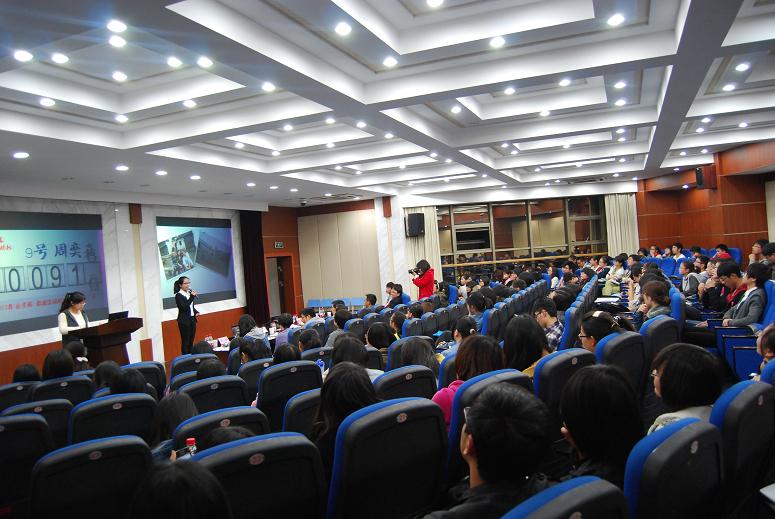 个人展示、评委提问、中间穿插随机采访,巧妙地安排使得整场比赛气氛非常热烈。评委步步紧逼,大有打破沙锅问到底的气势,而选手诙谐的回答却巧妙地应对了评委的“刁难”,比赛便在这样的氛围中紧张地进行着。经过激烈比赛角逐,郑施同学荣获大赛一等奖,周奕嘉、陈姗姗、夏烨香荣获大赛二等奖,王怡文、王萍、叶猛飞、陈振勇、余洪江、刘旭峰荣获大赛三等奖。