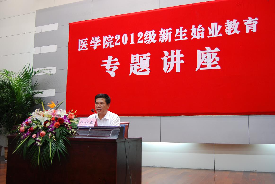 9月14日上午,在庄严而又隆重的医学生宣誓仪式后,校党委委员、院党委书记叶访春为2012级新生作题为“心术要好,医术要高”的首场始业教育专题讲座。