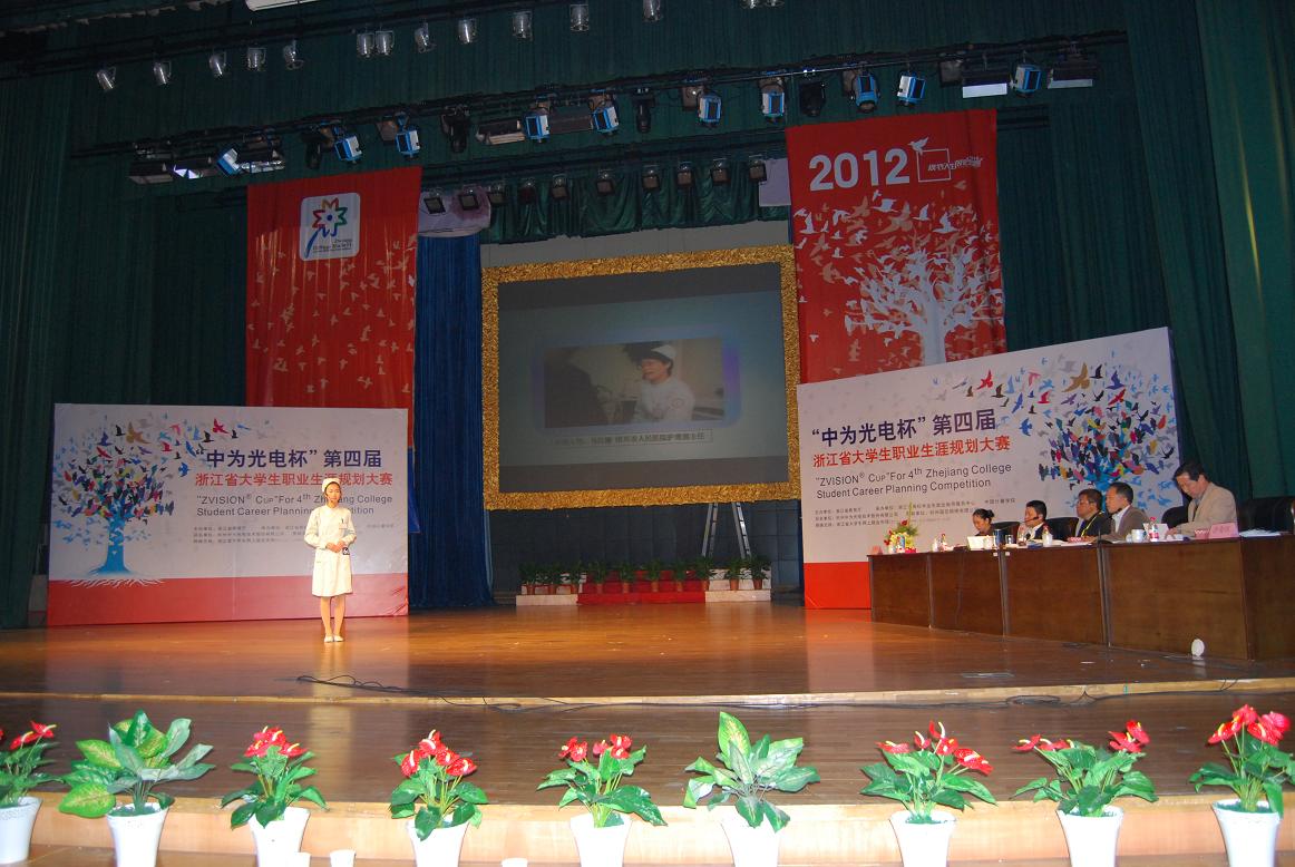 第四届浙江省大学生职业生涯规划大赛由浙江省教育厅主办,浙江省高校毕业生就业指导中心和中国计量学院承办,以“规划人生、放飞梦想”为主题,以“普及规划知识、提升职业能力、打造优质人生”为宗旨。大赛分赛前指导、初赛、复赛和决赛四个阶段。初赛由各高校组织实施,复赛组织专家对600名选手规划作品的电子文本进行匿名评审,从职业规划类和创业规划类中各评出70名选手晋级全省决赛,其中本研组和高职高专组各35名。决赛环节由主题陈述、职业角色模拟(创业角色展示)和现场答辩三部分组成。评委根据“第四届浙江省大学生职业生涯规划大赛决赛评分标准”对每位选手进行现场打分,按得分高低从各类别各组分别评选出特等奖、一等奖和二等奖获得者。