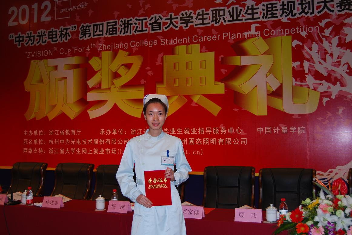 10月29日至31日,第四届浙江省大学生职业生涯规划大赛决赛和颁奖典礼在中国计量学院嘉量大会堂举行。经过激烈角逐,我院护理学104班冯媚燕同学荣获大赛本研组职业规划类一等奖,被授予“2012年度浙江省最佳职业规划之星”荣誉称号。校学工部马海枫老师和学生科马国庆老师被评为优秀指导教师。省委教育工委副书记、省教育厅副厅长蒋胜祥和浙江大学、中国计量学院、浙江理工大学、温州开云电子竞技官方网站、湖州师范学院等高校负责人出席颁奖仪式并为获奖选手颁奖。