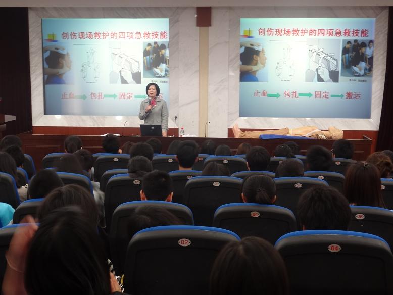 据我院红十字会工作人员介绍,现场卫生救护是挽救伤病者生命与健康的重要环节,现场救护的及时、正确、有效是救护成功的关键。在大学生群体中普及现场卫生救护知识,并试图通过他们逐渐向社会推广,将大幅度提高社会人群的急救知识普及率。