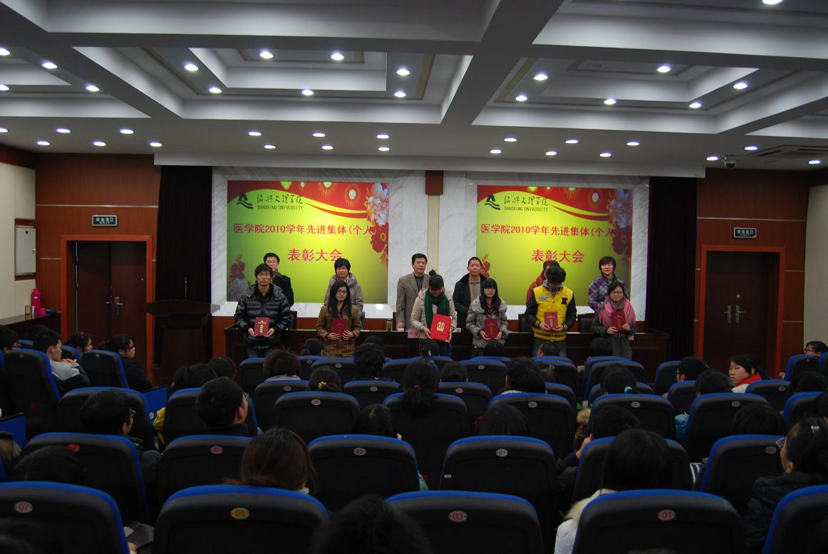 12月22日下午,财贞楼学术报告厅座无虚席,2010学年学生先进集体(个人)表彰大会在此举行。校党委委员、院党委书记叶访春,院党委副书记吴剑平,副院长朱小芳,学生科、教研科、团委等部门负责人,全体辅导员,各班主要学生干部,先进集体、奖学金获得者、英语四六级通过者、文明寝室、优秀寝室长代表近180人出席表彰大会。