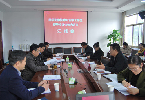 2017年3月21日下午,校教务处陈伟鸿处长率队来院进行医学影像技术专业学士学位授予权校内评估。院领导柳国庆、张剑,各系部、职能科室负责人参加汇报会。会议由教务处副处长蒋胜永主持。