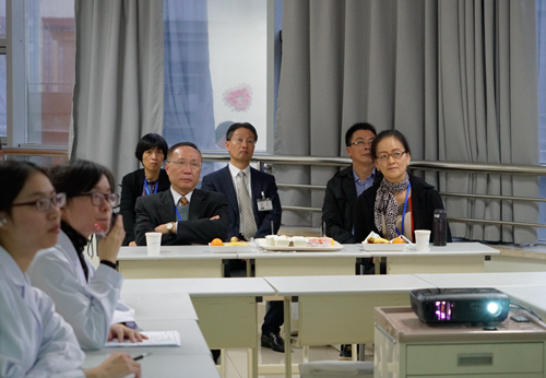 听取汇报后,专家组成员在寿永明副校长和医院领导的陪同下实地考察临床技能培训中心,主要考察了模拟病房、模拟手术室、技能操作室、多功能教室、中央监控室等,现场观摩教学,并与正在进行模拟操作的学生亲切交流。医院的技能培训中心设备先进、功能齐全、环境整洁,得到专家们的一致好评。