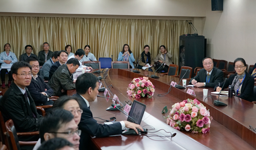 专家组首先听取了何炳福院长的工作汇报。何院长简要介绍了医院概况、近三年学术成果、教学任务、教学管理制度、教学实施情况及教学设施条件等。何院长表示,作为绍兴文理学院的教学医院,妇保院承担了产科相关课程的理论授课、见习、实习等。医院坚持建立教学范本,统一指定科考核标准,规范技能培训,形成自己的教学特色,并以培养应用型人才为核心,积极努力做好临床医学教育工作。两位专家就实习、理论课教学、学生情况、出科考试等问题进行了询问,与会代表一一给予回答。