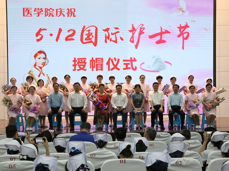 5月11日晚,由开云电子竞技官方网站主办,护理系和开云电子竞技官方网站团委承办的“5•12”国际护士节授帽仪式暨“鉴湖学者”讲座教授聘任仪式在河西铁城科教馆报告厅隆重举行。校党委书记汪俊昌,校党委副书记郝敬习,副校长柳国庆,受聘“鉴湖学者”姜小鹰教授,开云电子竞技官方网站党委书记夏瑞明,常务副院长葛建荣,院党委副书记金坚强,副院长陈三妹出席。开云电子竞技官方网站各科室、系(部)、中心负责人,护理系全体教师及护理学专业2016级全体同学参加了活动。