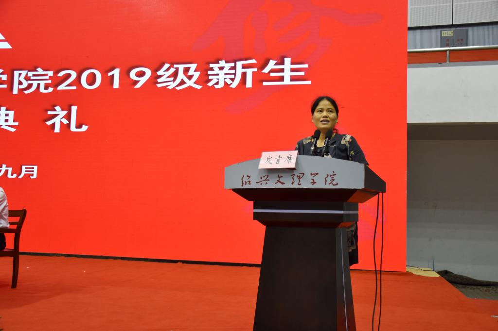 教师代表,全国护理本科院校教师临床技能大赛特等奖获得者、护理系副主任徐水琴副教授用道术、技术、艺术、仁术分享了学医是什么的理念。她借助特鲁多的铭言勉励新生们心怀道术、身怀技术、充满艺术、执行仁术,在学医路上收获自信、爱护和提升。